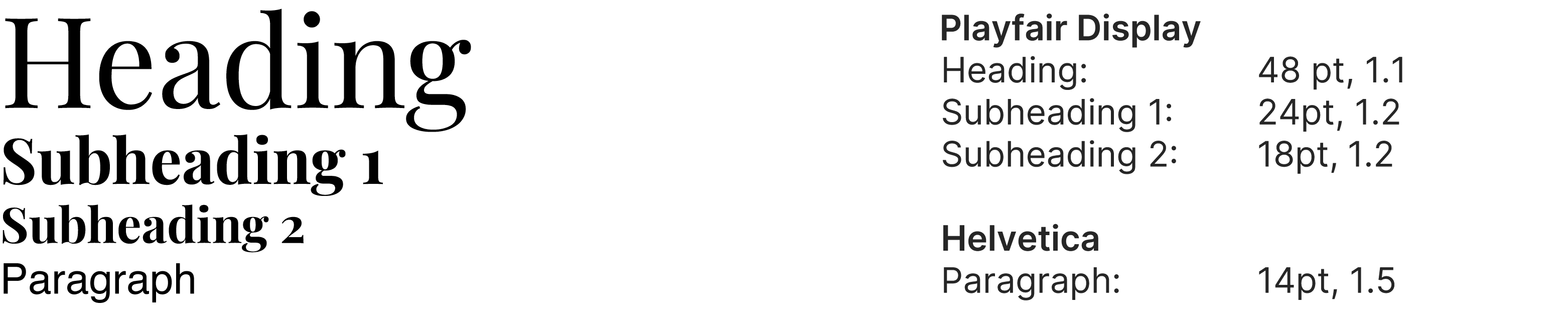The typographic system is a strategic pairing of serif and sans-serif fonts. Playfair Display is used for headings, offering a high-contrast, classic style that complements the Didot-inspired logo. For body text, Helvetica was selected to ensure maximum legibility. This combination was also a practical solution to a limited font selection on the client's web design platform, demonstrating how technical constraints can lead to a functional and harmonious design pairing.